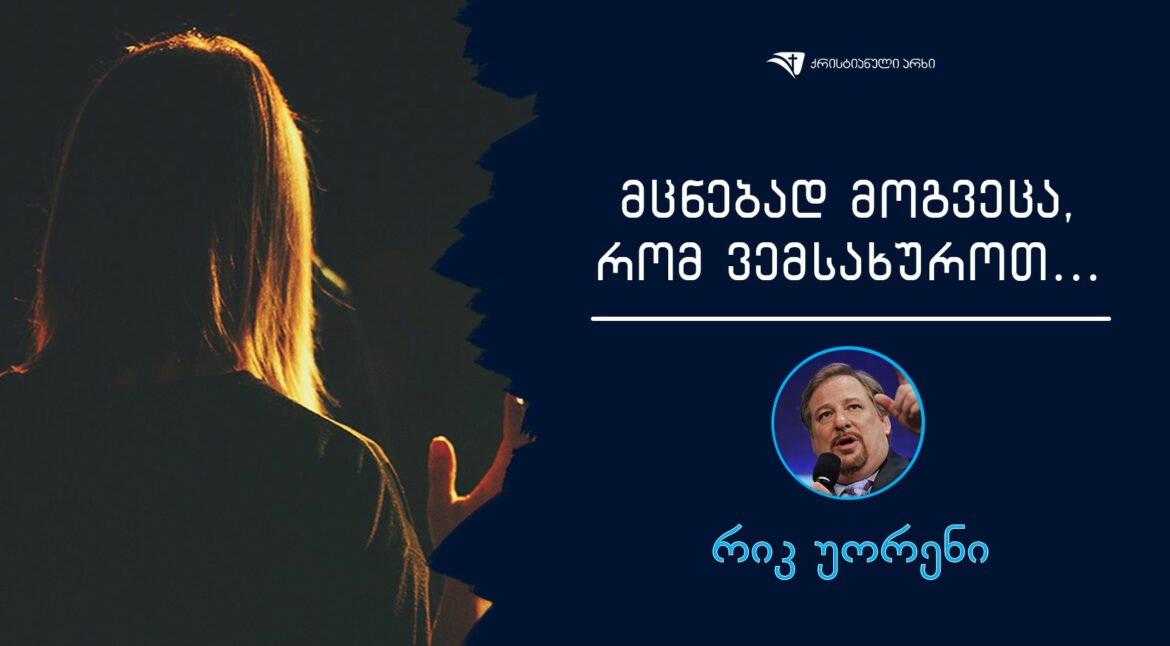 სულიერი ზრდის კვალდაკვალ იზრდება სურვილი იმისა, რომ სხვებს ვემსახუროთ. „გაზრდილი“ ქრისტიანი აღარ სვამს კითხვას: „ვინ დააკმაყოფილებს ჩემს საჭიროებათ?“, არამედ ამბობს: „რის გაკეთება შემიძლია სხვისთვის?…“