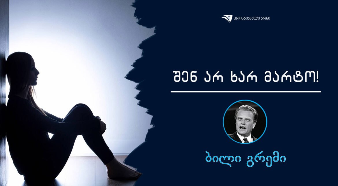 ათასობით ადამიანმა კი ქრისტე იპოვა თავისი მარტოობის პასუხად. ებრაელი ყმაწვილები, დანიელის მეგობრები მარტონი არ იყვნენ, როცა გავარვარებულ ღუმელში ჩაყარეს. მათთან იყო ის, ვინც შესახედაობით ღვთის ძეს ჰგავდა. არც მოსე იყო მარტო მიდიამის უდაბნოში, როცა ღმერთმა ნუგეში სცა მას და აღმატებული მსახურებისკენ მოუწოდა. ელიაც არ ყოფილა მარტო გამოქვაბულში, როცა ღმერთმა ჩამოიარა და ჩუმი, წყნარი ხმით დაელაპარაკა. არც პავლე და სილა ყოფილან მარტონი ფილიპეს საპყრობილეში, როცა ღმერთს უგალობდნენ, რადგან უფალი იყო მათთან. ქრისტეს შეუძლია განუგეშოს და ცხოვრების გზაზე შენ გვერდით იაროს.